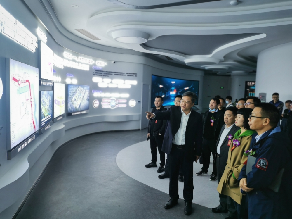 會前,郭健跳帶各位招商顧問參觀了新落成的臺州夢想加速園區(qū)展廳,介紹了新區(qū)近幾年取得的成績。